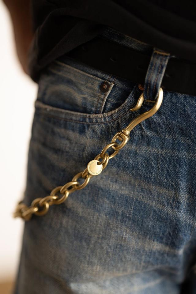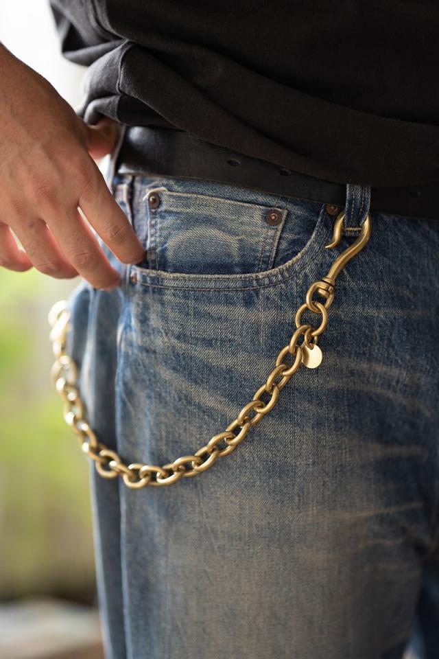 こちらの製品は「アンポリッシュ仕上げ」としており、ブラス特有のざらついた表面感を生かしジーンズに似合う無骨な印象が特徴です。