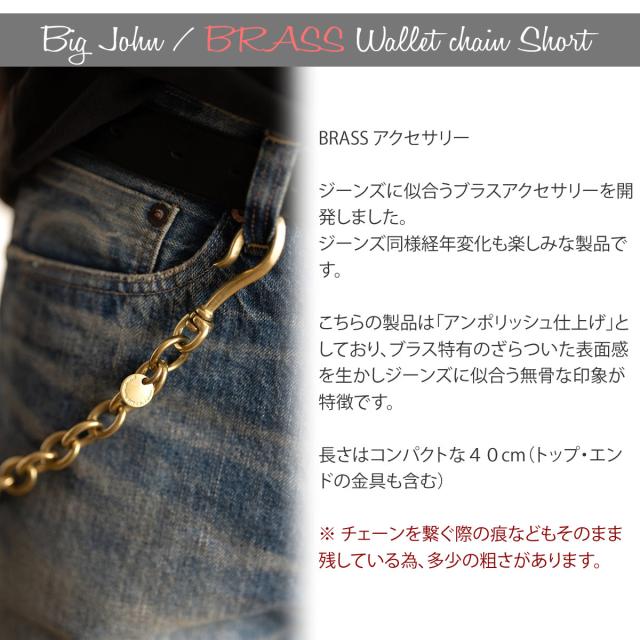 【 ショートタイプ 】ビッグジョン 真鍮ブラス製 ウォレットチェーン ショート BIG JOHN ( VWC02 ) 財布用コード チェーン BRASS アメカジ アクセサリー 経年変化 BIGJOHN 定番 日本製 札入れ 小銭入れ レディース メンズ おしゃれ アーベン 普段使い 実用的