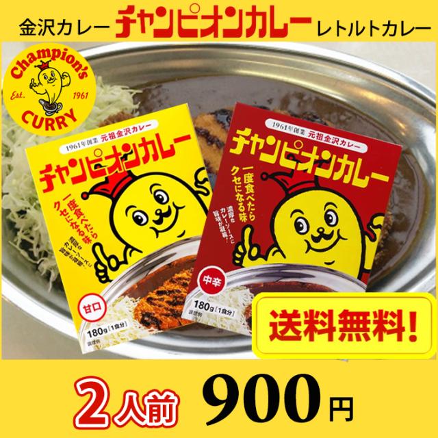 【送料無料】2人前 金沢カレー チャンピオンカレー レトルトカレー 甘口・中辛 選べる2食 / カレー カレールゥ ルー 金沢カレー 濃厚 おいしい レトルト