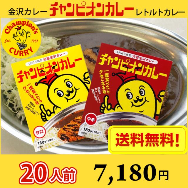【送料無料】20人前 金沢カレー チャンピオンカレー レトルトカレー 甘口・中辛 選べる20食 (北海道 沖縄 離島は別途送料1200円かかります) / カレー カレールゥ ルー 金沢カレー 濃厚 おいしい レトルト