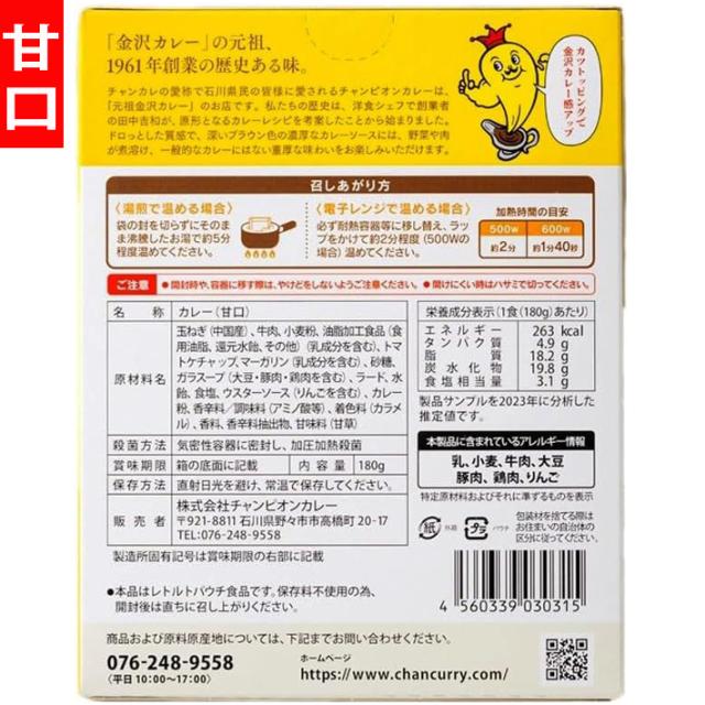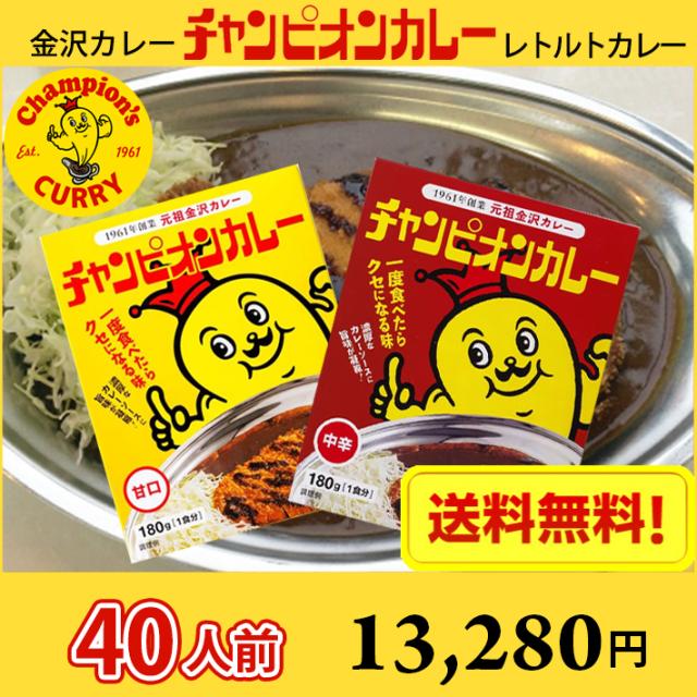 【送料無料】40人前 金沢カレー チャンピオンカレー レトルトカレー 甘口・中辛 ケース販売40食 (北海道 沖縄 離島は別途送料1200円かかります) / カレー カレールゥ ルー 金沢カレー 濃厚 おいしい レトルト