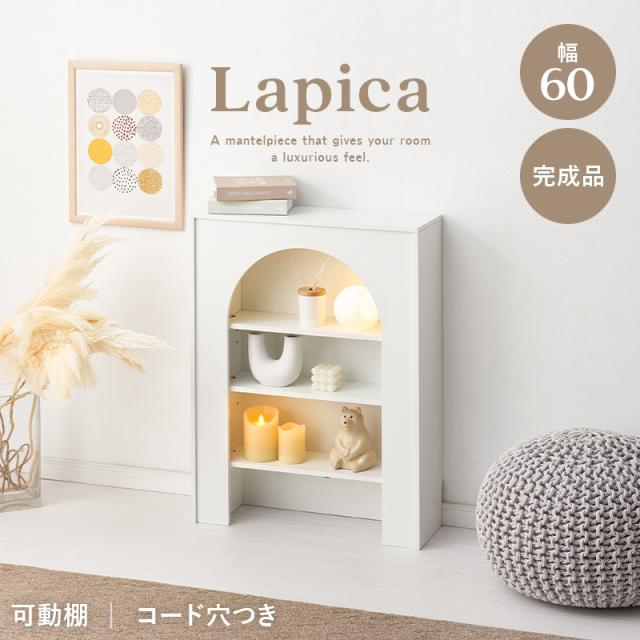 マントルピース 収納 棚 完成品 ラック 幅60 オープンラック 白 家具 飾り棚 おしゃれ ディスプレイラック 収納棚 スリム 小物収納棚 ホワイト 韓国風 ラピカ 可動棚 姫系 可愛い アンティーク風 韓国インテリア コード穴