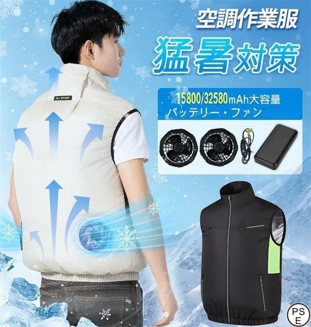空調服 空調ベスト 15800mAh / 32580mAh 専用バッテリー 付き 空調ウェア 空調作業服 フルセット 空調扇風服 4段階強風 22h連続送風 エアコン服 ファンベスト UVカット UPF 50+ 2025 男女兼用