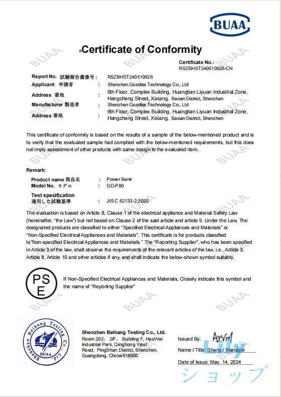 使用時間:最大22h連続使用(32800mAhバッテリー使用の場合)