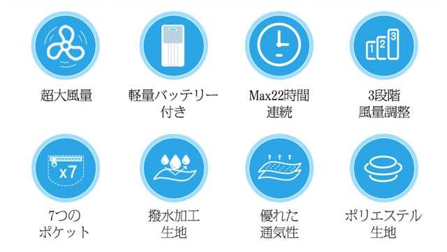 - クーラーのない部屋での作業の多い私には真冬以外は必須と言っても良い商品です、毎日使用するので何着(洗濯)も必要、しかしこれは全てセットなのでかなりお得。 風量もバッテリーも持ちも充分(9〜18.19時...