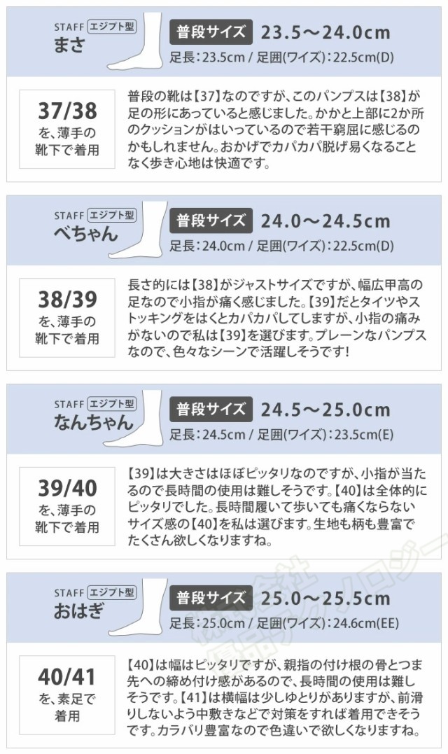 - よい評価が多数あり購入しましたが私の足には合いませんでした。半額だったからかしら? 親指のつま先が靴にあたり踵は歩くたびに脱げてきます。裸足で履くと脱ぐ時に薄いインソールが足についてきます。パンチ穴は...