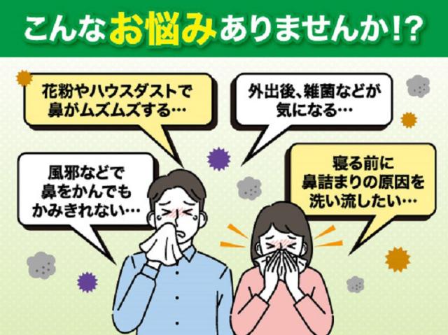 ●鼻の奥に進入した雑菌や花粉をしっかり洗浄します。