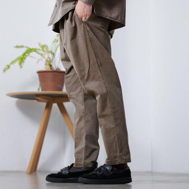 ヴィンテージ感漂う風合いと色落ち加工が特徴のイージーパンツ。