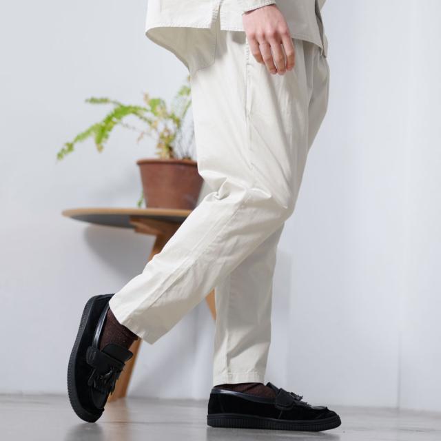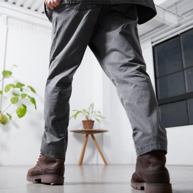 リラックス感のある穿き心地ながら、脚のラインにきれいにフィットするテーパードシルエットで、カジュアルながらも洗練された印象を演出します。