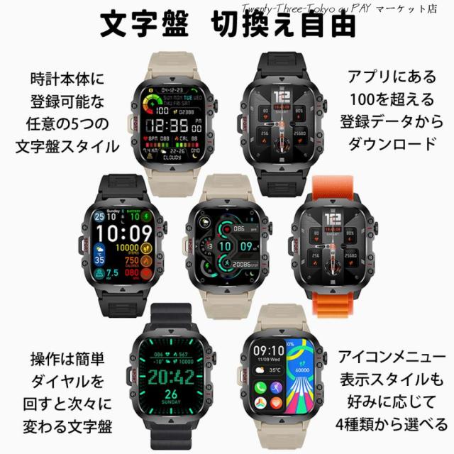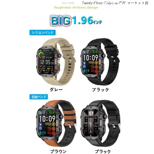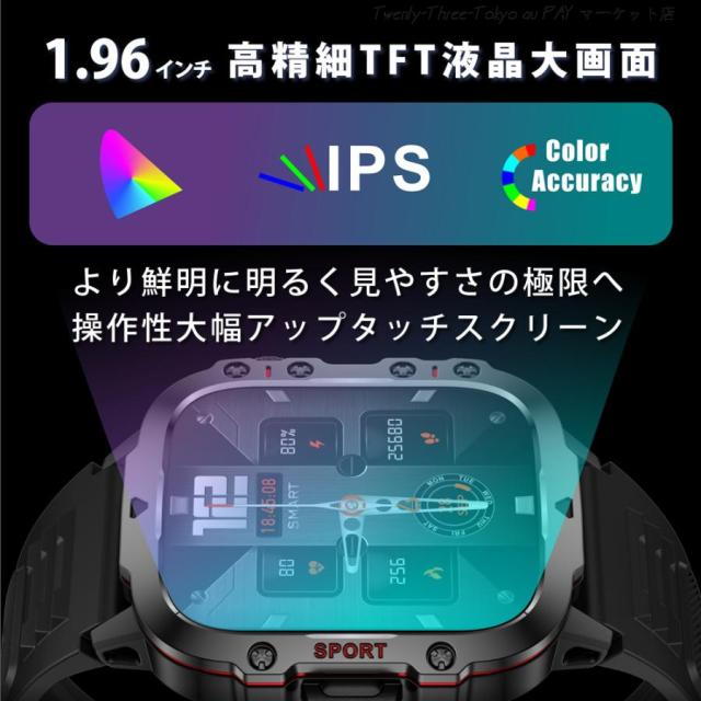 2025最新 スマートウォッチ 通話機能 アウトドア レディース メンズ 腕時計 1.96インチ 心拍計 歩数計 着信通知 IP68防水 運動モード 睡眠検測