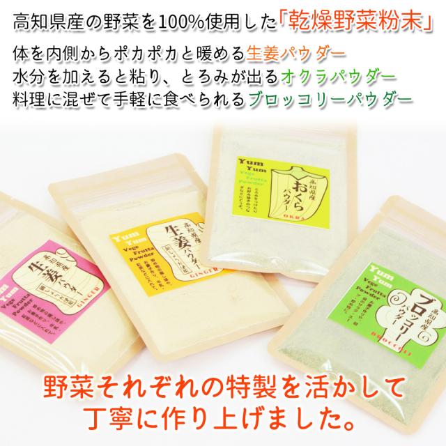 高知県産100%の乾燥野菜粉末を使用し、素材の特性を活かして丁寧に作り上げました。