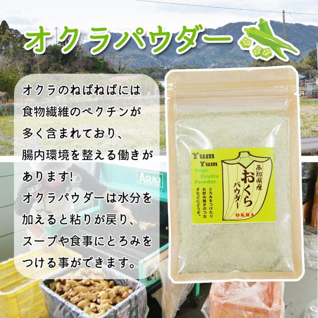 オクラパウダーは水分を加えると特有の粘りが戻ります。スープや食事にとろみをつける事が出来ます。