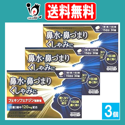 【第2類医薬品】★スカイブブロンHI 30錠(15日分)×3個セット【日野薬品工業】アレルギー専用鼻炎薬 花粉・ハウスダストなどによる鼻みず・鼻づまり・くしゃみに フェキソフェナジン塩酸塩 120mg配合