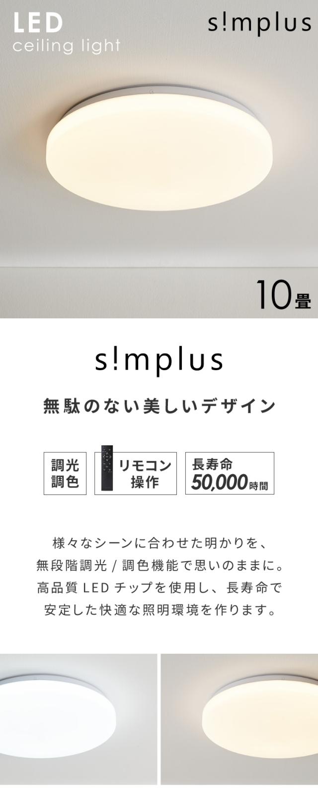 simplus シーリングライト 10畳 リモコン付き 無段階調色調光 LED 調光 調色 明るい 高演色 薄型 ナイトライト リビング 子供部屋 おしゃれ タイマー機能 メモリ機能 節電モード シンプラス SP-CEL