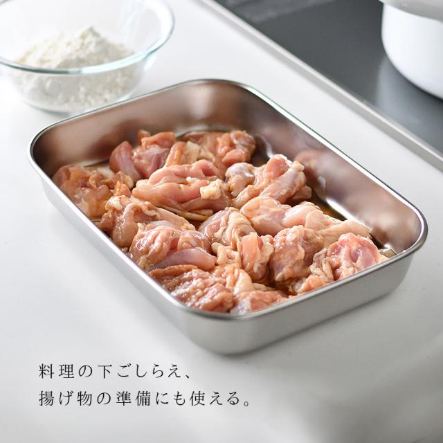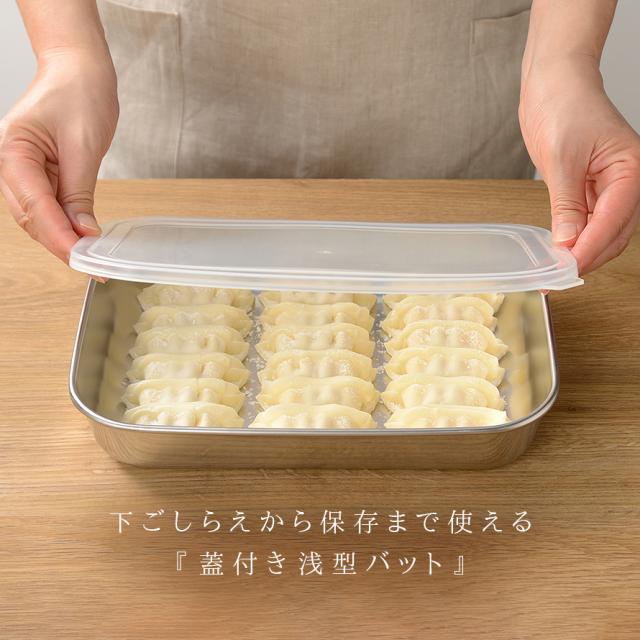 下ごしらえから保存まで使えて料理はかどる『ステンレス保存バット 大』安心の日本製、金属加工の産地「燕三条」の職人が作り上げた上質なステンレス製。