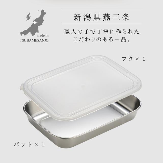 燕三条 ステンレスバット 蓋付き ステンレス バット 蓋 保存容器 浅型 フタ付き オークス ステンレス保存バット 大