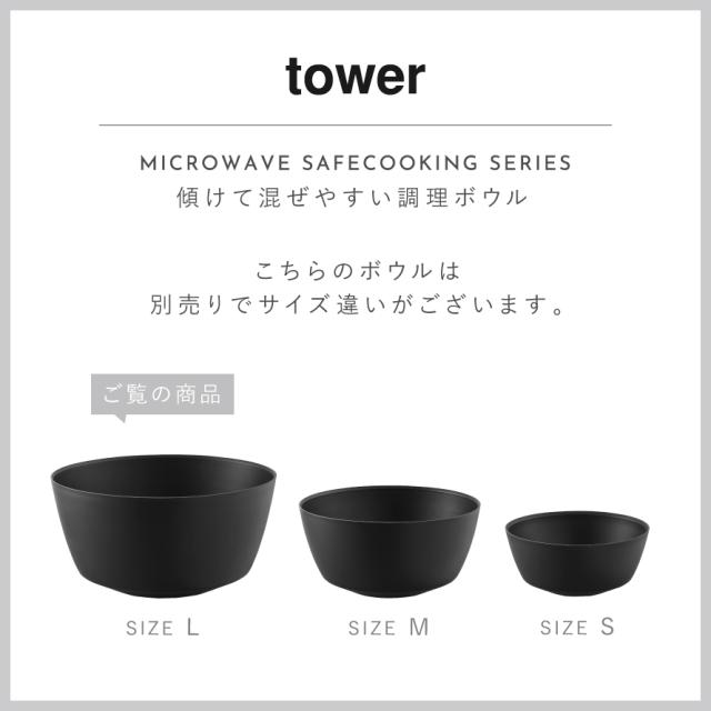 傾けて混ぜやすい調理ボウル 電子レンジ対応 L タワー 山崎実業 tower ボウル レンジok レンジ 食洗機 食器 冷凍 おしゃれ モノトーン ホワイト ブラック 1389 1390