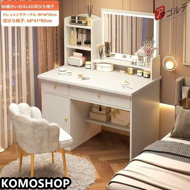 ドレッサー おしゃれ テーブル 安い 鏡台 椅子 スツール セット 収納 LED ライト デスク 化粧台80CM メイク コスメ かわいい 化粧 家具