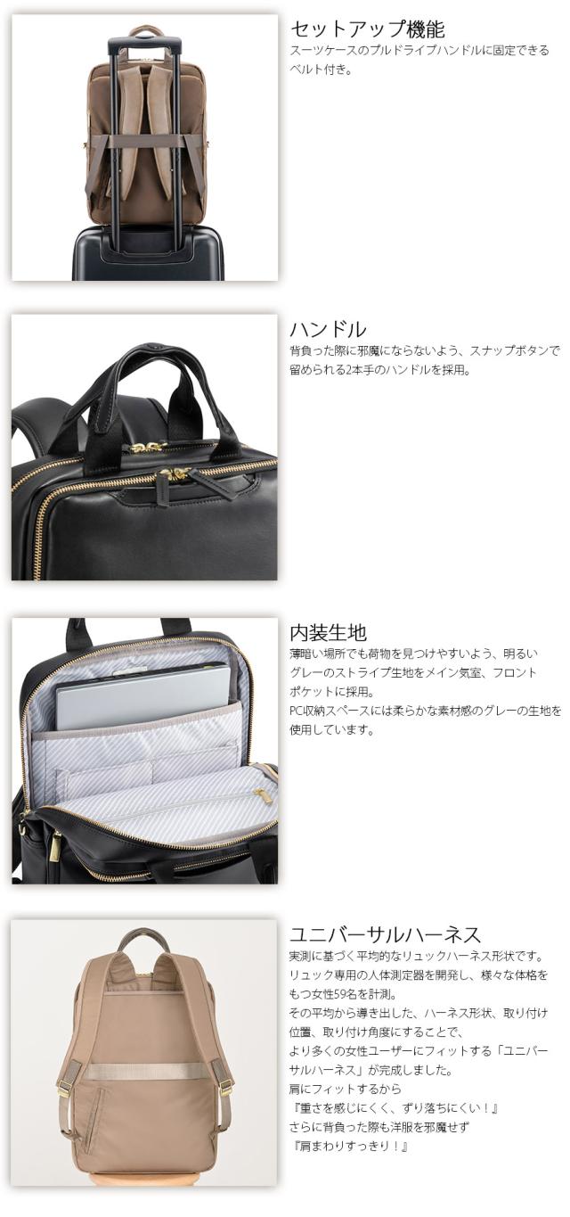シンプルでスリムな女性向けビジネスリュックシリーズ。ビジネススタイルに合わせやすいデザインと上品な素材で展開しました。