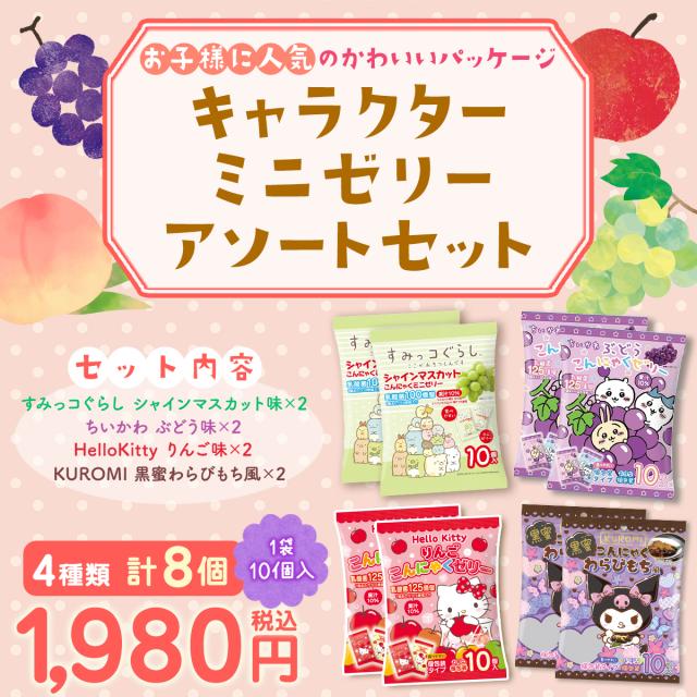 こんにゃくゼリー キャラクター アソートセット 詰め合わせセット ひとくち蒟蒻ゼリー パウチ すみっコぐらし ちいかわ Hello Kitty ハローキティ KUROMI クロミ ひとくち ゼリー こんにゃくパーク スイーツ ヨコオデイリーフーズ 群馬県産 (4種類*8袋入)