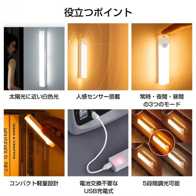 新生活 センサーライト 人感センサーライト 室内 充電式 LED 玄関 廊下 トイレ 自動 USB マグネット 足元 キッチン sl107