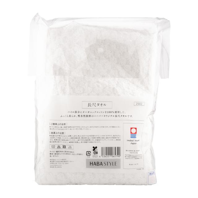 HABA ハーバー 長尺タオル ふっくら柔らか 吸水性抜群 今治タオル ホワイト 綿100% 34cm×100cm[ギフトラッピング対応]