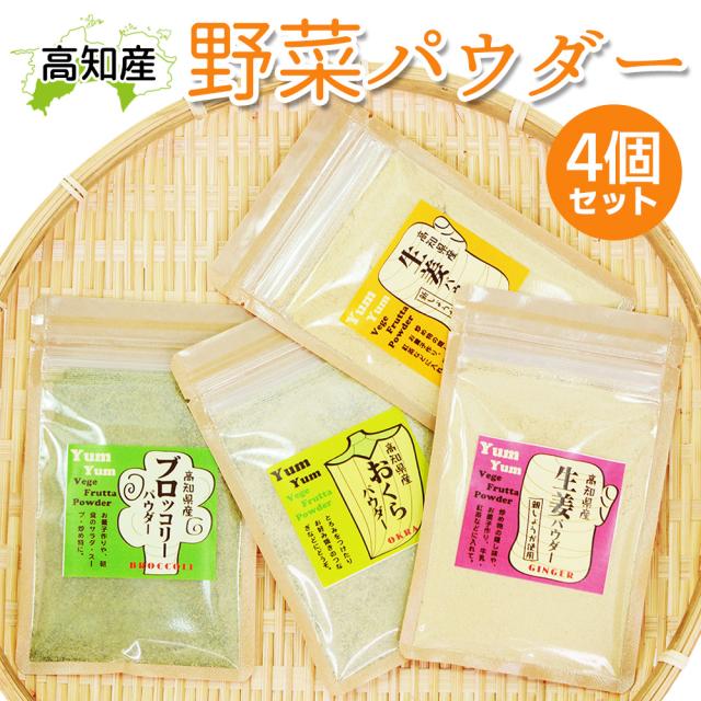野菜パウダー 4個セット 生姜パウダー おくら オクラ パウダー ブロッコリーパウダー【メール便送料無料】高知産 無添加 無着色 国産 野菜 粉末 オクラ粉 生姜粉 ブロッコリー粉 新生姜 親生姜 高知県土佐市 カトレア