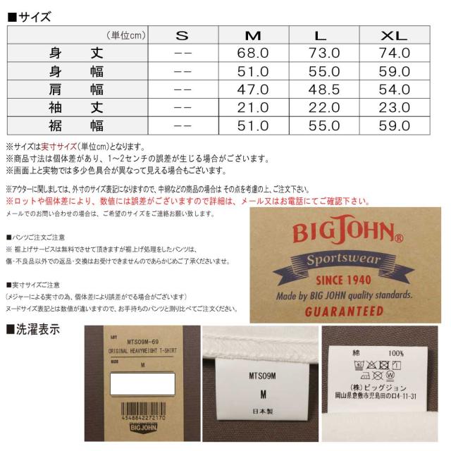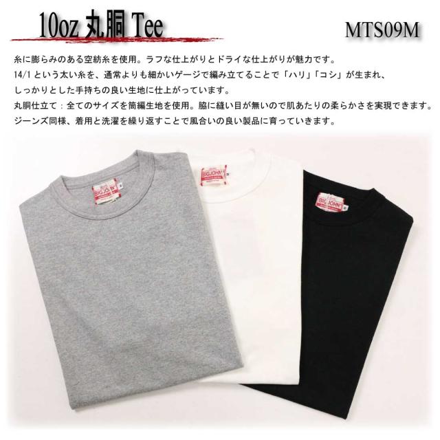メール便発送 BIGJOHN ビッグジョン 半袖 Tシャツ MTS09M 10oz 丸胴 Tee クルーネック 無地 空紡糸 ドライ ラフ カジュアル メンズ スポーツウェア