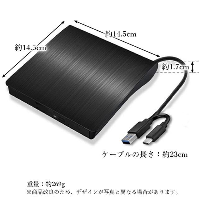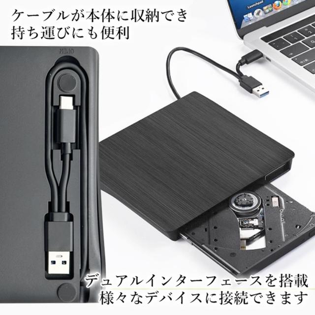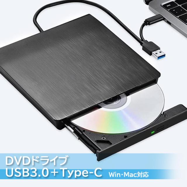 外付けDVDドライブ USB3.0&Type-C両対応 高速データ転送 静音設計 薄型ポータブルデザイン Windows/Mac OS対応 ブラック (管理S) 送料無料