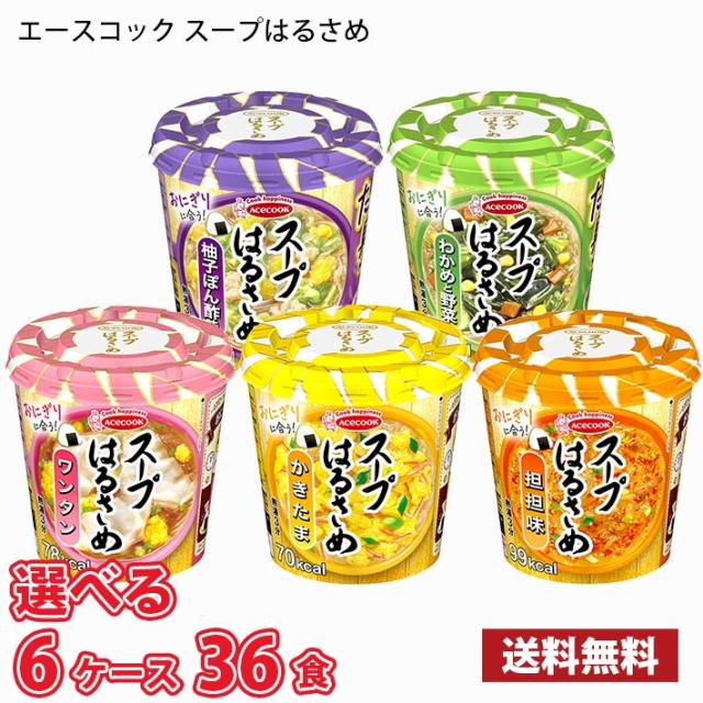 【選べる6ケース】エースコック スープはるさめ 6食×6箱 合計36食 送料無料(北海道は別途700円かかります。沖縄配送不可) / はるさめ ワンタン かきたま 担担 柚子ぽん酢 わかめ 野菜