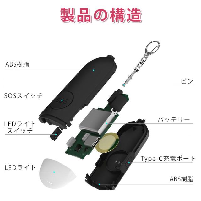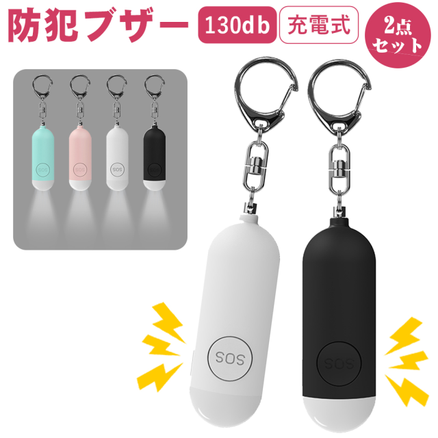 【2点セット】防犯ブザー 防犯アラーム Type-C充電 電池不要 130dB 大音量 LEDライト点灯点滅 防犯グッズ 防犯対策 防犯ベル ランドセル 小学校 小学生 女の子 男の子 子ども 入園準備 入学祝い