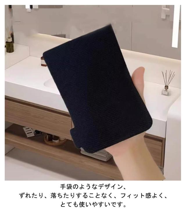 | つるぴか素肌へ導く♪ 皮膚に近い模様と滑らかな質感の天然ゴム素材を使用、痛くならず、溜まった角質をきれいに落としくすみのない肌に♪ 古い角質や老廃物を落とし、美しい肌へと導きます。 お風呂に入り肌を十分温めてから使うと、角質や汚れが落ちやすくなります。 手袋のようなデザイン、ずれたり、落ちたりすることなく、フィット感よく、とても使いやすいです。 角質除去効果がよくて、毎日の使用は避け、1週間に1?2回の使用を推奨します。 | |