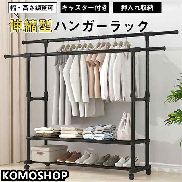 新登場 ハンガーラック 押入れ 伸縮式 2段 1段 頑丈 スリム パイプハンガー 棚付き キャスター付き 省スペース 大容量 コートハンガー コンパクト 送料無料