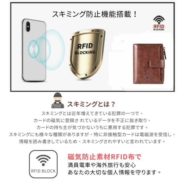 財布全体に特殊フィルムを搭載することで、スキミング犯罪から個人情報が盗み取られるのを防ぎます。