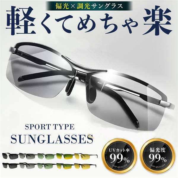 サングラス 偏光 調光 メンズ UVカット 偏光サングラス 調光サングラス 調光偏光サングラス UVカット スポーツ ゴルフ 釣り ドライブ