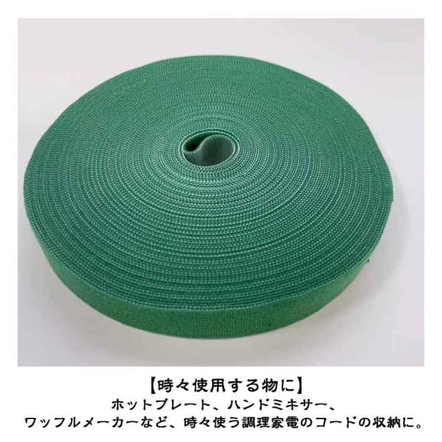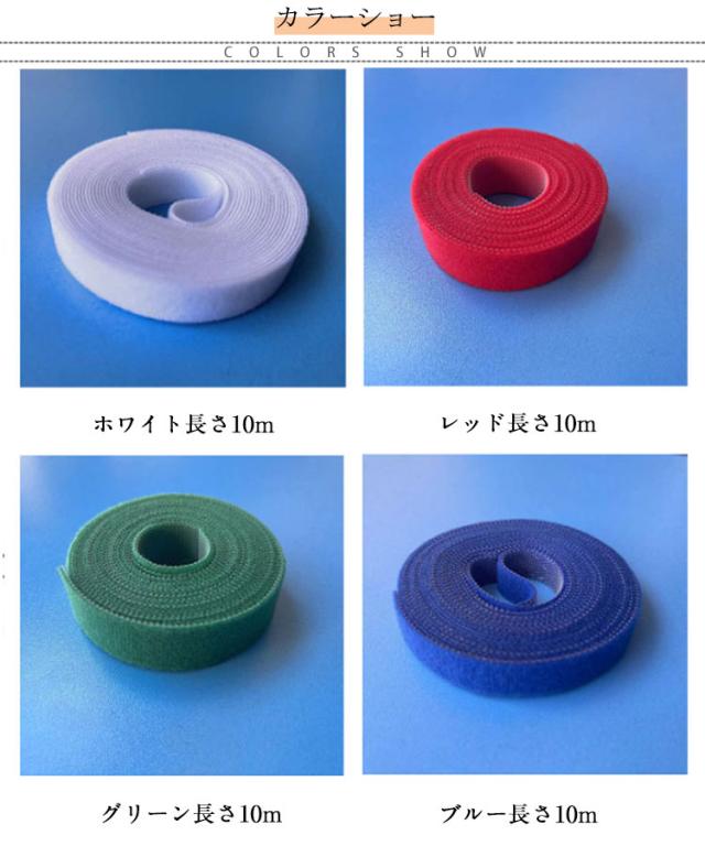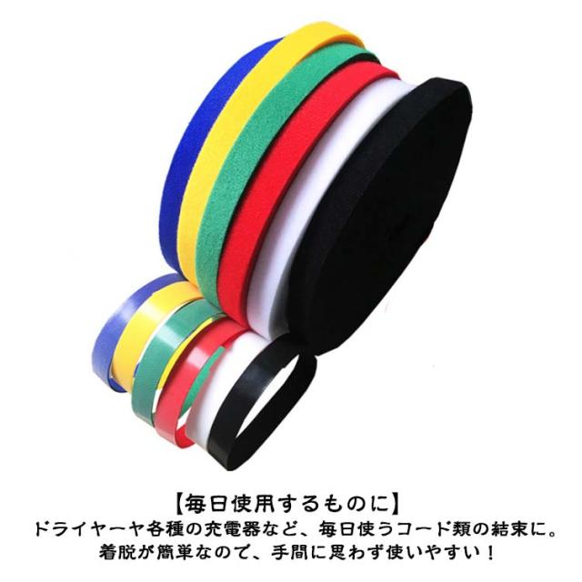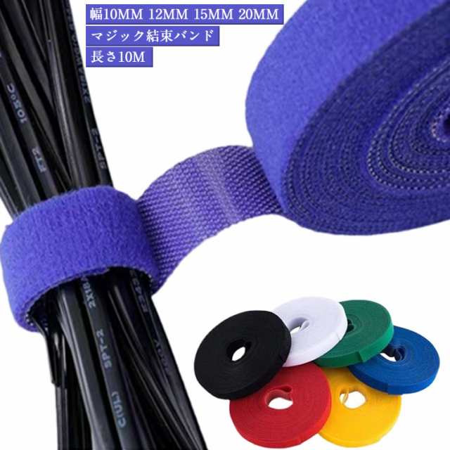 | 【マジック結束バンド】【長さ10M】【幅10MM 12MM 15MM 20MM】 【繰り返し使える】 マジックテープ式の結束バンド。一般的な結束バンドと違い、何度でも使えるので経済的。 【好みの長さでカット】 使いたい場所により長さを自由に調整できるセルフカット方式。様々な長さの結束バンドを用意しなくても、これ1本でOK! 【毎日使用するものに】 ドライヤーヤ各種の充電器など、毎日使うコード類の結束に。着脱が簡単なので、手間に思わず使いやすい! 【時々使用する物に】 ホットプレート、ハンドミキサー、ワッフルメーカーなど、時々使う調理家電のコードの収納に。 | |