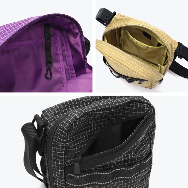 軽量で耐久性のあるリップストップ素材を使用したミニショルダーバッグ。フロントにはリフレクター入りテープを採用し、夜間の視認性もアップ!コンパクトながら必要なものをしっかり収納でき、デイリーからアウトドア、旅行まで幅広く活躍します。ストリートコーデに馴染むデザインで男女問わず使える万能アイテムです。