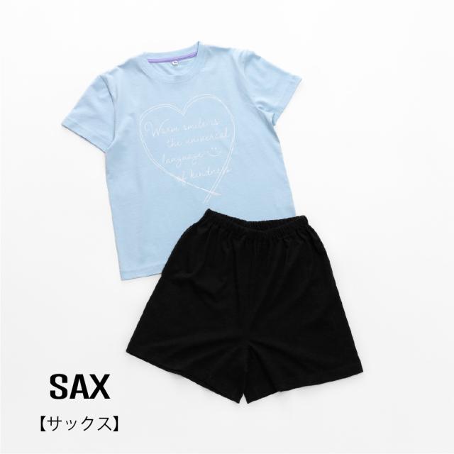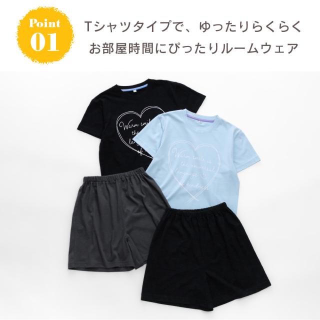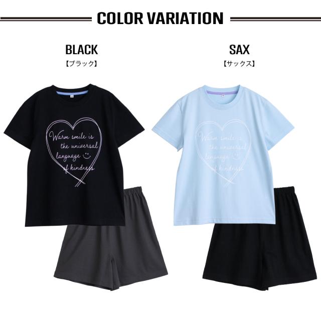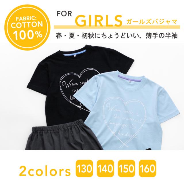パジャマ キッズ 女の子 綿100% 半袖 春 夏 柔らかく軽い薄手の快適Tシャツ かわいい ハート プリント サックス ブラック 130 140 150 160 子供 ガールズ ジュニア 部屋着 ルームウェア メール便なら 送料無料