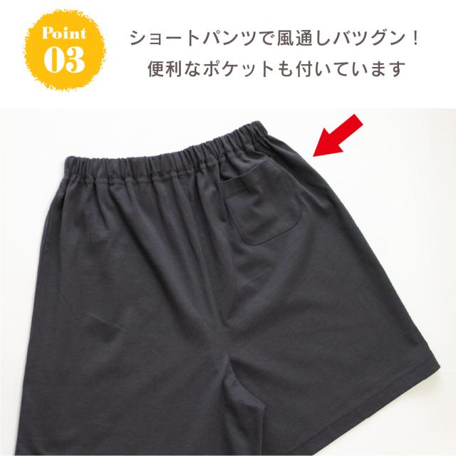 ●パンツ仕様 : ショートパンツ/後ろポケット/ウエスト総ゴム/ゴム取替口