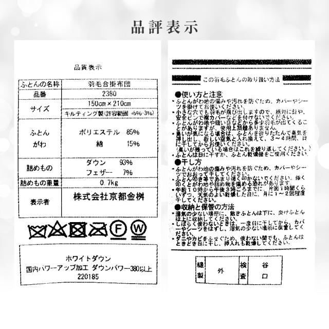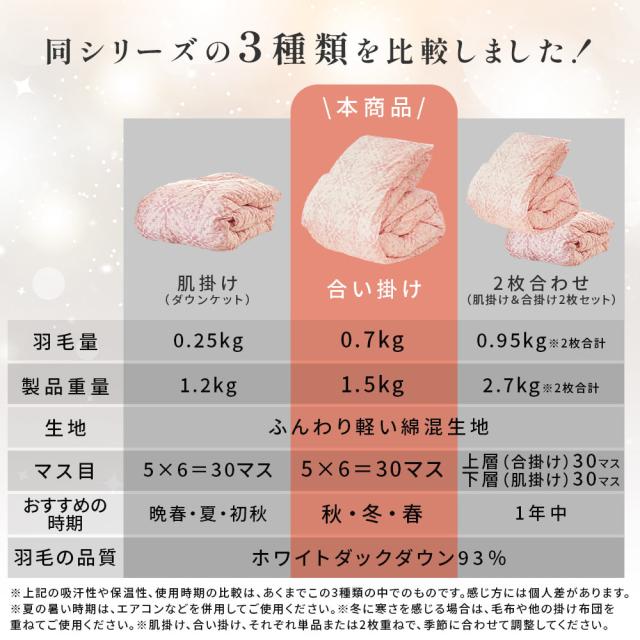 [keyword|当社限定 羽毛合掛け布団 シングル 国産 春用 秋用 冬用 ホワイトダウン93% 0.7kg 羽毛合掛けふとん 羽毛布団 羽毛ふとん 日本製 京都金桝]