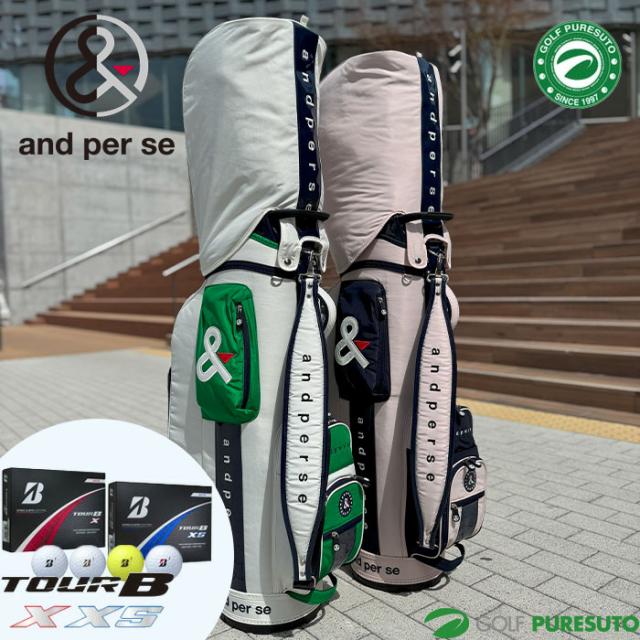 アンパスィ キャディバッグ 9.0型 AUS7995 別注 プレストオリジナル カートタイプ ネームプレート刻印無料! and per se&ブリヂストン ゴルフ ゴルフボール NEW TOUR B X/TOUR B XS 1ダース 2024年モデル