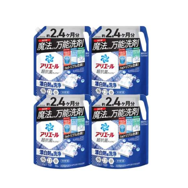 アリエール 洗濯洗剤 液体 超抗菌プレミアム 漂白剤級洗浄 清潔でさわやかな香り 詰め替え 1720gx4袋 [大容量] [ケース品] 約2.4ヵ月分