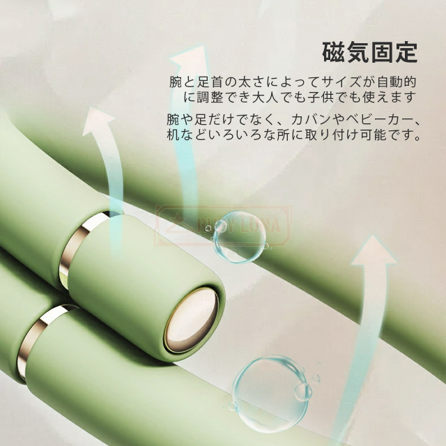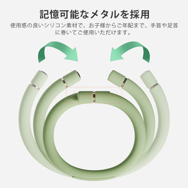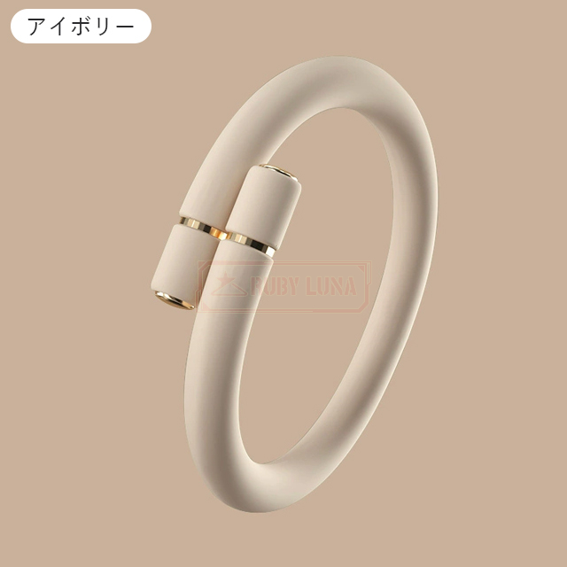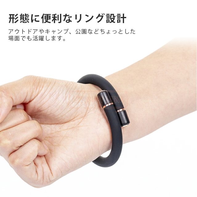 | 【サイズが自動に調整可能】 | ◆超強力なルビジウム磁石と形状記憶合金の使用により、蚊除けリングが落ちにくくサイズは自由に調整可能。 ◆腕と足首の太さによってリングが調節でき、ご家族全員でご使用可能です。 ◆グレードシリコンを採用し、肌へのあたりが柔らかく、曲がった場合でも折れたり割れたりして肌を傷つける心配はありません。 |