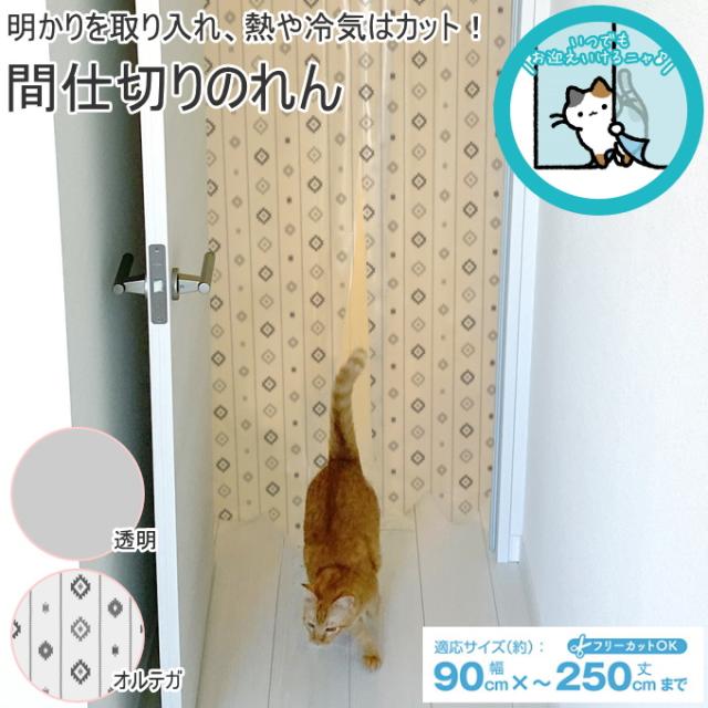 ペット用 間仕切りのれん 90×250cm 日本製 のれん 間仕切り ビニールカーテン パーテーション つっぱり棒 階段 廊下 洗面所 脱衣所 仕切り 省エネ エアコン 暖房効率 冷房効率 断熱 防寒 カットOK 明和グラビア