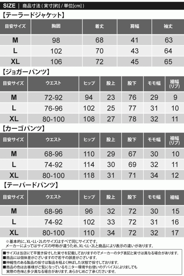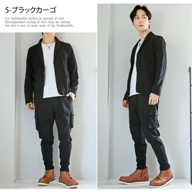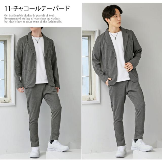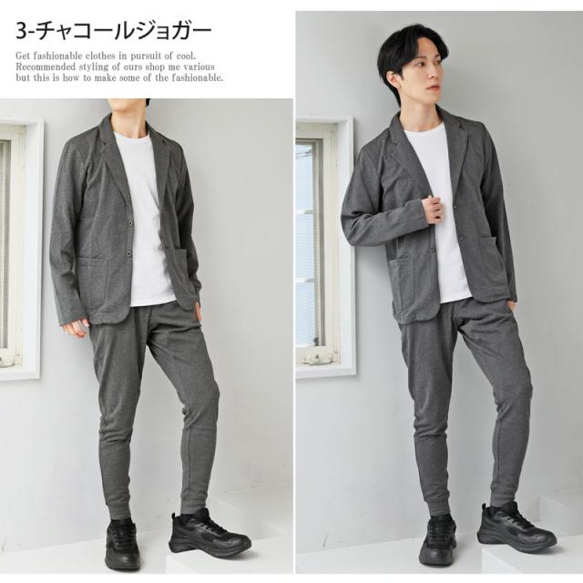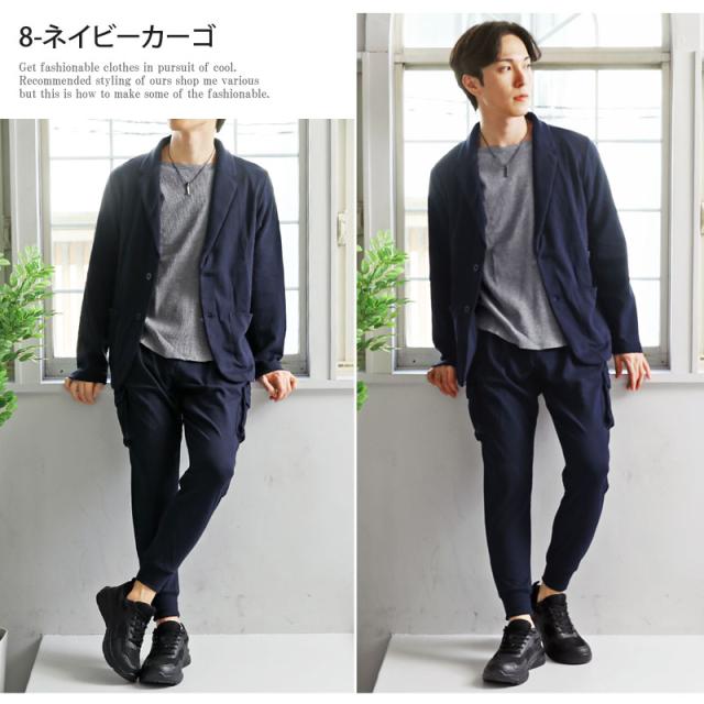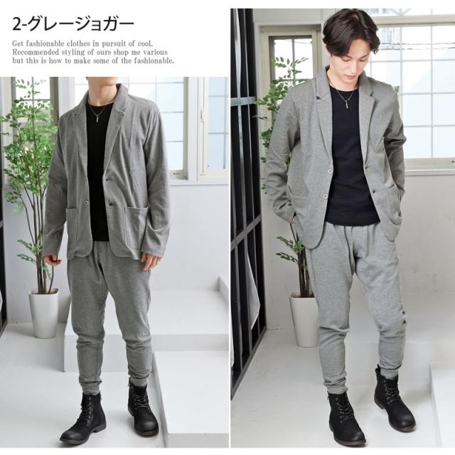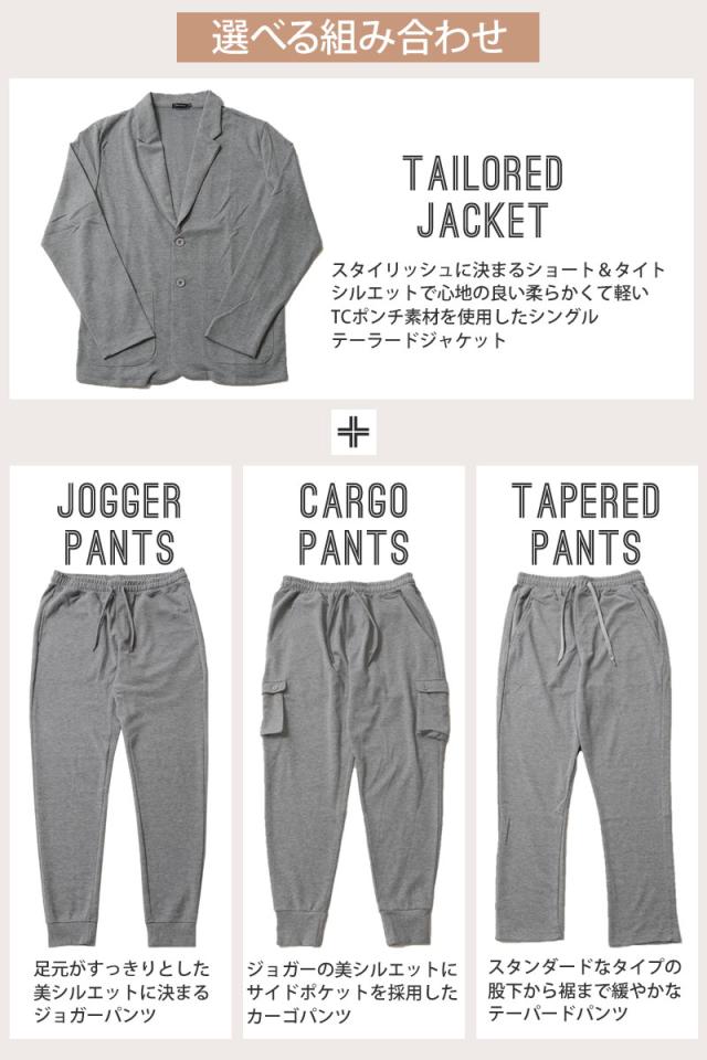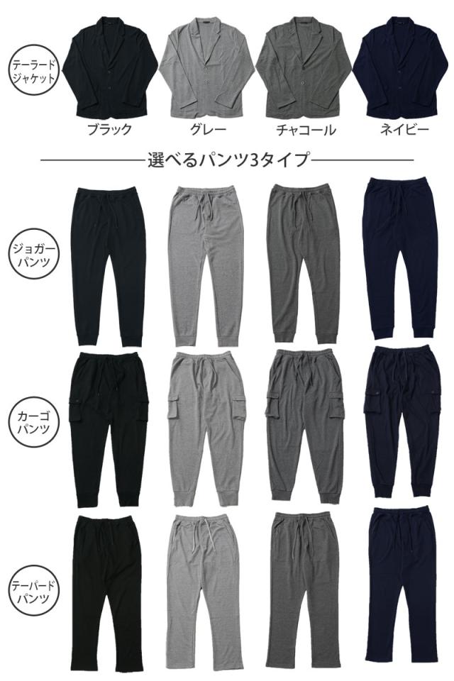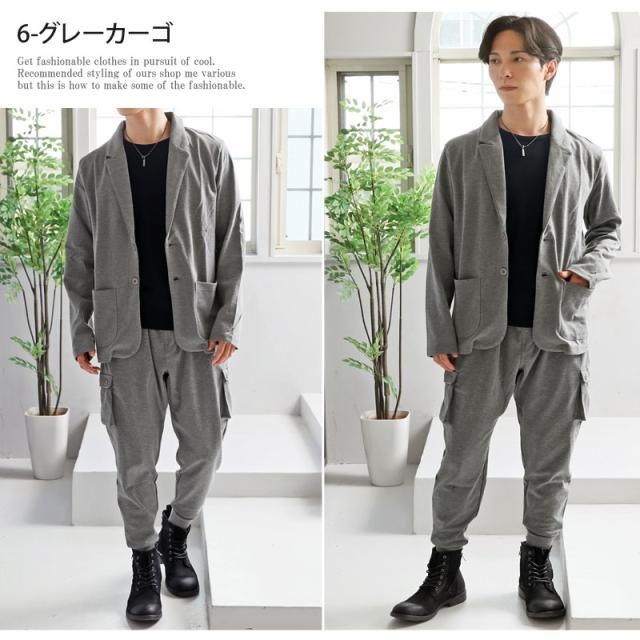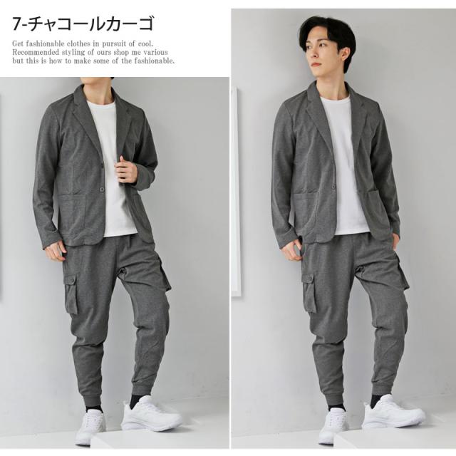 送料無料 スウェット素材テーラードジャケットとジョガーパンツとカーゴパンツテーパードパンツのセットアップスーツ 新作