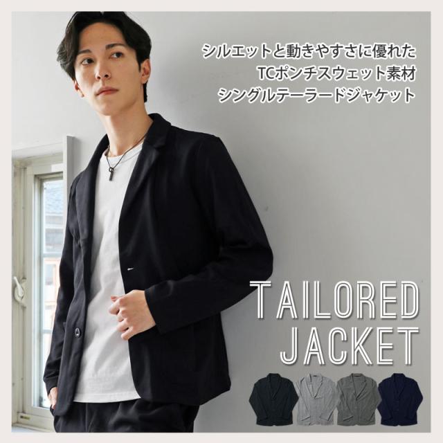 シルエットと動きやすさに優れたTCポンチスウェット素材を使用したシングルテーラードジャケットと