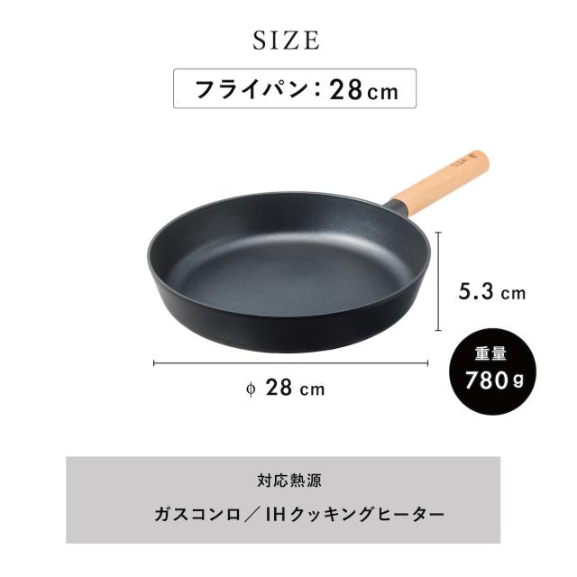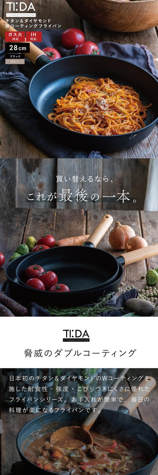 フライパン 28cm TI:DA フライパン マルチパン ブラック グレー ih IH ガス 幅広い熱源に対応 軽い おしゃれ フライパン 深型 チタン&ダイヤモンド TIDA tida