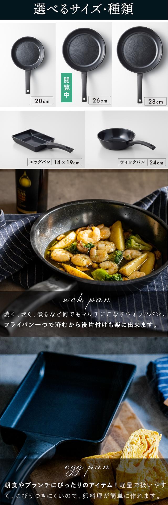 焦げ付きにくさ、耐摩耗性、遠赤、硬度、抗菌、消臭など機能性に優れた今までにないまったく新しいセラミックコーティングを採用したフライパンです