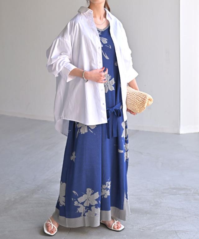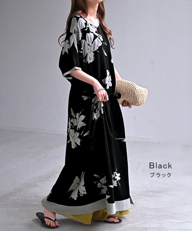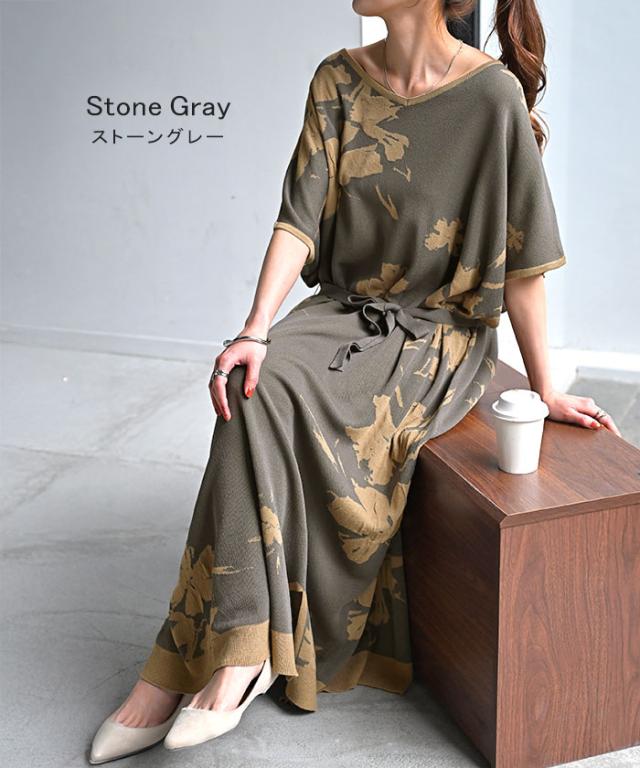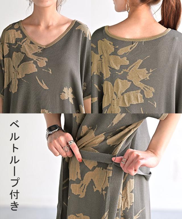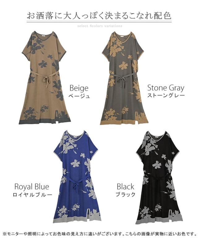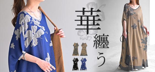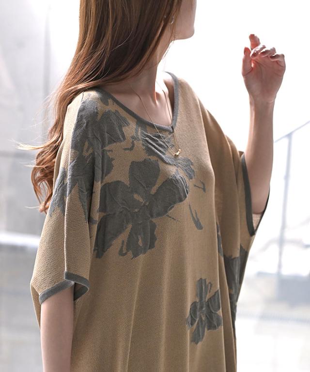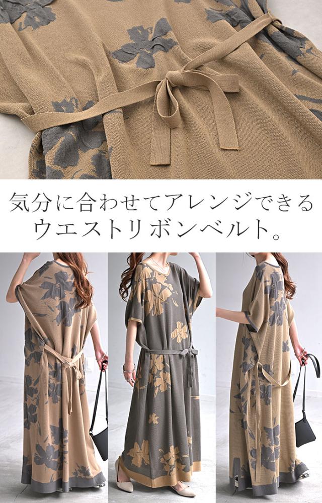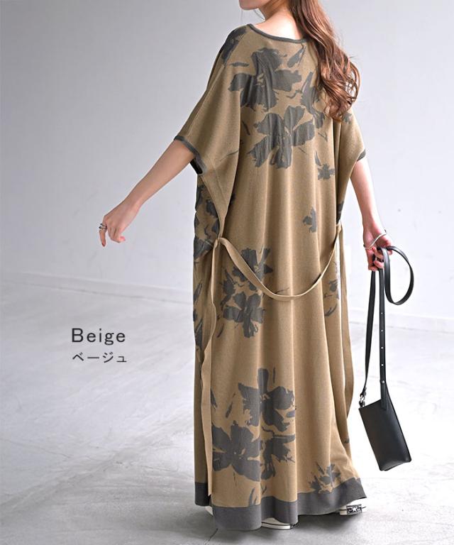 ざっくり着られて花柄が目を惹くニットワンピースです。