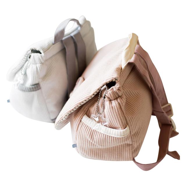 ぽこぽことした表面が楽しいワッフル素材のベビーリュックです。オムツや、おもちゃを入れるのはもちろん、1歳のお誕生日には一升餅を入れてお祝いにもおすすめです。※内側にはいざという時に嬉しいお名前ネーム付き。取り外しできるクリアの星型チャームがアクセントになっています。※直径20cm×高さ8cmまでのお餅が入ります。一升餅は地域によって大きさが異なります。